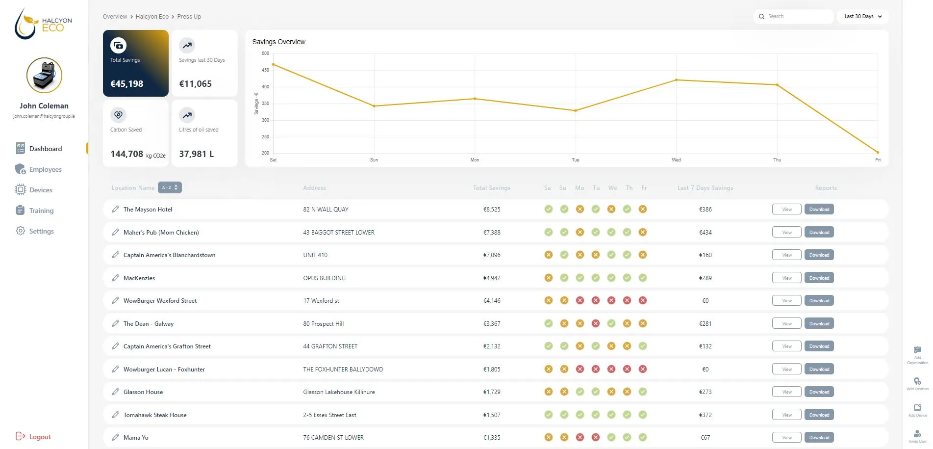 I highly recommend the Halcyon ECO Oil Filtration Machines based on my firsthand experience as a user. The real time reporting of cost savings and CO2 reduction is a game changer in kitchens.